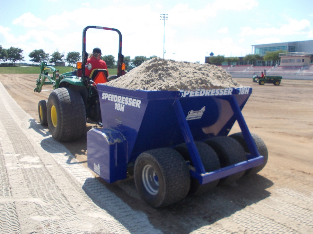 Campey™ SPEEDRESSER™ 18H — это разбрасыватель сыпучих материалов, предназначенный для работы со всеми материалами для пескования. 4 флотационные шины на поворотной оси сводят к минимуму риск повреждения и уплотнения газона. Идеально подходит для использования на полях для гольфа и спортивных площадках как частными клубами, так и местными властями и подрядчиками. Для SPEEDRESSER™ 18H требуется трактор мощностью не менее 30 л. с. SPEEDRESSER™ 18H приводится в движение гидравлически от трактора с использованием мешалки и двойных роликов. Высокая скорость работы позволяет выполнять пескование глубиной от 2 до 75 мм за один проход.