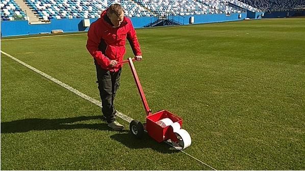 Чемпионат мира по футболу 2018 в России Стадионы Волгоград и Нижний Новгород: Redexim Carrier минимизирует стресс спортивного газона на игровых площадках При скольжении игроков и во время больших нагрузок во время матча футбольные поля сильно страдают. Кроме того, операции по зимнему восстановлению и ремонту поврежденных участков поля также вызывают стресс у газона, как и следы обслуживающего персонала и оборудования, которое они эксплуатируют. Обычно для выполнения большинства работ по обслуживанию газона агрономы используют трактор. Аэрация, пескование, скарификация, вертикуляция, разуплотнение граблями, посев и подметание обычно выполняются с помощью легких тракторов, но их вес все равно вызывает значительное давление на грунт, а риск продавливании шинами дерна еще более высок, если дерн мягкий, например после зимы или во время ливней. Стадион Волгоград подсевался 3 раза этой весной при помощи сеялки Speed-Seed, которая агрегатировалась с тягачом Carrier, каждый раз подсев осуществлялся в 3-х направлениях, используя 3 вида райграса. Роман использует пескователь Rink (модель 1010), чтобы точно распределять песок на поле, а также аэратор Verti-Drain (модель 1513), чтобы разуплотнить почву, сделав тонкие отверстия стальными зубьями по всему игровому полю. Агроном Владимир Проскуряков из Волгоградского стадиона использует Carrier с той же техникой для обслуживания, что и стадион «Нижний Новгород», но, работая на прилегающих площадках для тренировок, он часто комбинирует эту технику с трактором. Это происходит, когда почва твердая, а трава достаточно здоровая. Разметка с помощью Turfliner - яркие линии на газоне в Нижнем Новгороде