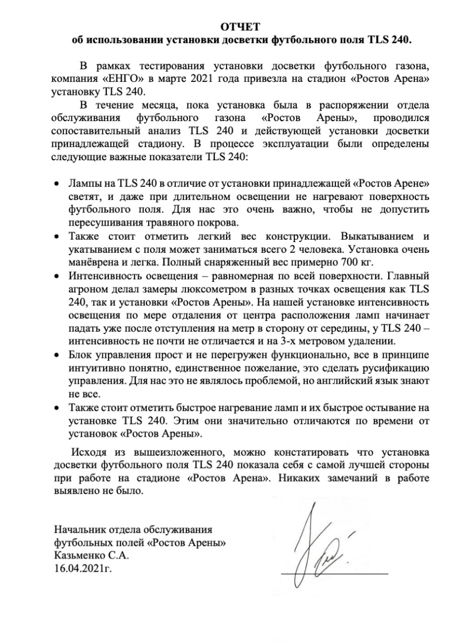 Стадион "Ростов Арена". Тестирование ламп RA TLS