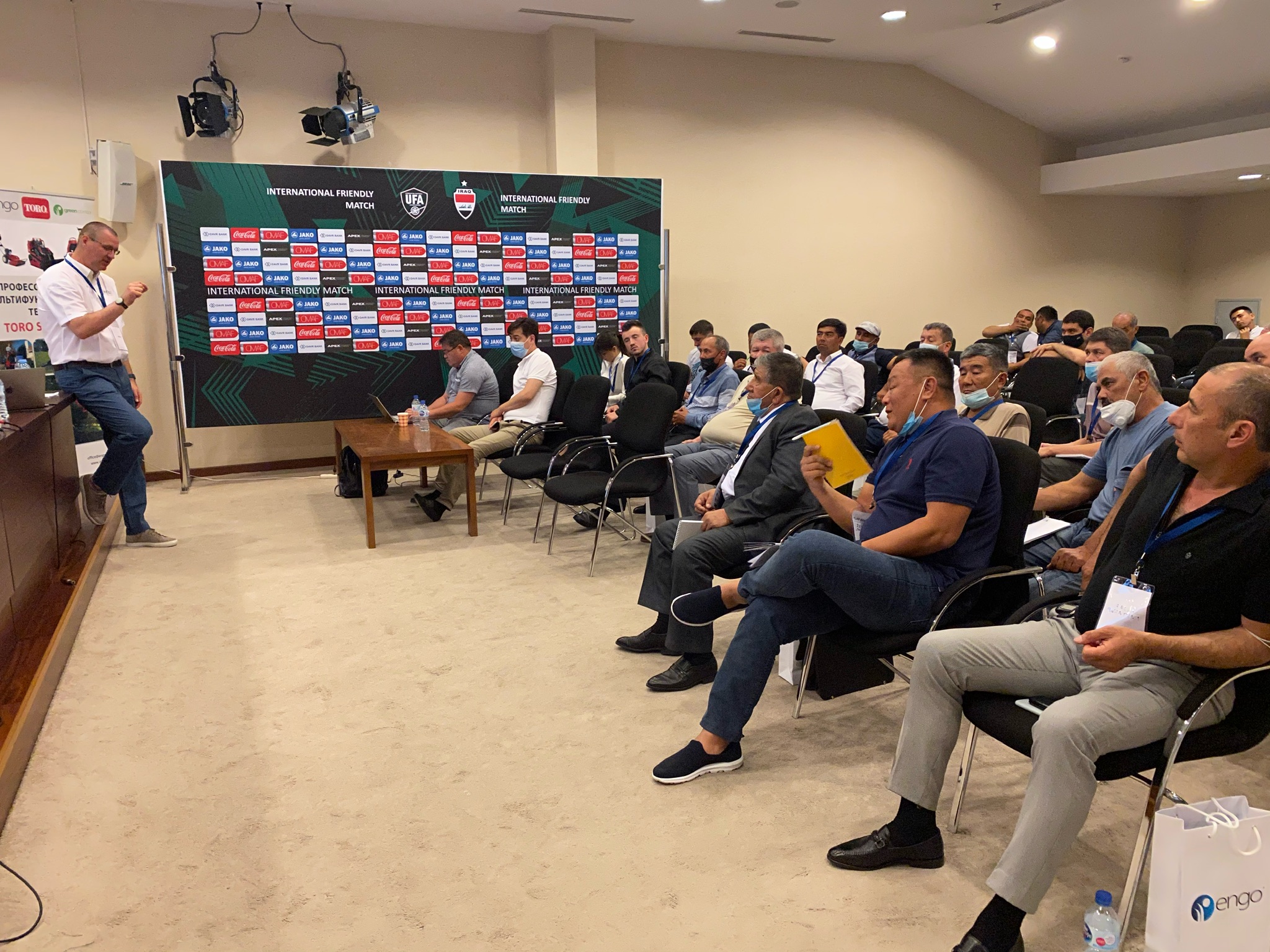В середине мая международный холдинг «ENGO» и профессиональная футбольная лига Узбекистана провели образовательный семинар «TURF EDUCATION 2021 UZBEKISTAN» для директоров спортивных объектов, специалистов индустрии строительства и обслуживания спортивных полей с натуральным/искусственным газоном в Узбекистане, г. Ташкент. Мероприятие было организовано по инициативе ПФЛ Узбекистана с целью повышения уровня профессиональной подготовки специалистов отрасли. На конференции выступили специалисты из Словакии, России и Украины, имеющие богатый опыт в данной индустрии. На презентации рассматривались такие актуальные темы, как: Также в рамках семинара прошли дискуссии с ведущими специалистами из индустрии управления, строительства и обслуживания спортивных объектов Узбекистана в формате «Круглый стол». После выступлений все участники посетили футбольное поле национального стадиона Бунёдкор, в стенах которого проходила конференция. Подводя итоги поездки, хотели бы отметить высокое качество организации мероприятия, поблагодарить Генерального Секретаря Футбольной Ассоциации Узбекистана (UFA) Аваза Максумова и Генерального Директора Профессиональной Футбольной Лиги Диёра Имамходжаева за то, что они вносят вклад в развитие футбольной индустрии и заботятся о росте профессиональных качеств своих специалистов.