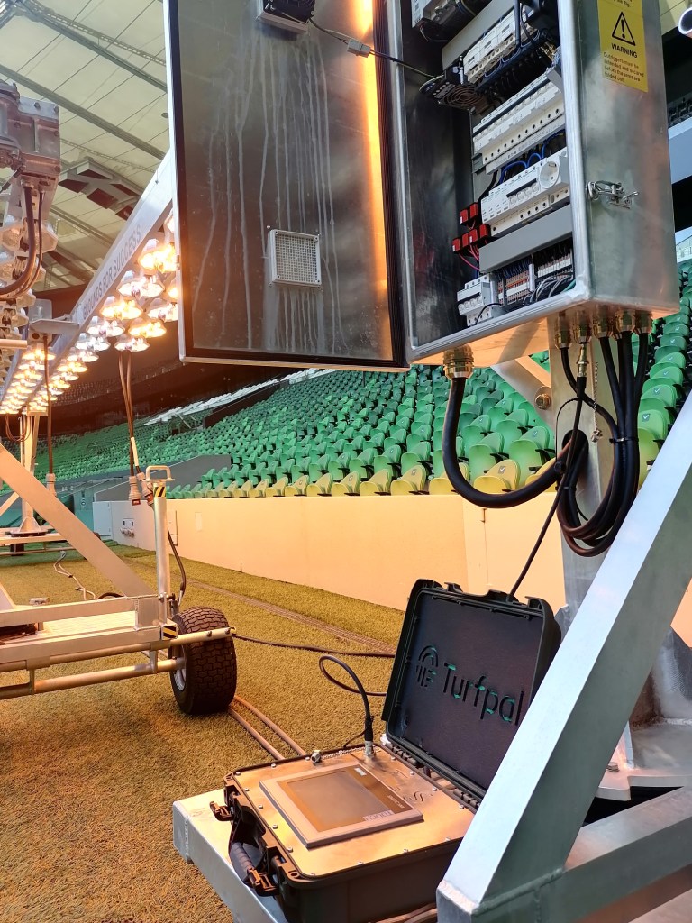 1-я партия новых осветительных установок RA TLS c системой TurfPal уже на стадионе «Краснодар Арена». Новые осветительные установок TLS 36T – это дополнительный инструмент для достижения поставленых целей, оснащенный системой с Turfpal. Turfpal - это новый программный сервис для контроля качества газона, который можно использовать на футбольном, регбийном и гольф полях или на любом профессиональном спортивном газоне. Ключевые функции Turfpal: