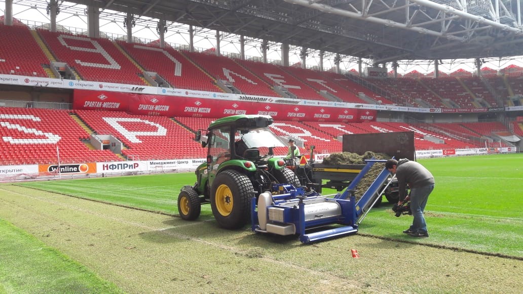 Отлично зарекомендовавшее себя оборудование широко известно в России и многие агрономы уже по достоинству оценили его технические характеристики и непревзойденное качество реновации спортивного газона. Натуральный футбольный газон – это сложнейшая экосистема, даже самый продвинутый в техническом смысле газон через несколько сезонов, хотите вы этого или нет, все равно потребует тотальную реновацию. Регулярная реновация спортивного газона – обязательная процедура, гарантирующая состояние игровой поверхности, которое соответствует самым взыскательным требованиям игроков и тренера. На сегодняшний день, инновационные технологии компании Campey, умноженные на многолетний опыт работы Engo Group, позволяют выполнить строительство, реконструкцию, обслуживание и реновацию спортивных полей, полей для гольфа и других спортивных площадок в соответствии с мировыми стандартами качества. Реновация прошитого газона. Рабочая ширина захвата. Услуга по реновации. Для уточнения деталей предлагаем связаться с нами и рассчитать стоимость реновации Вашего газона. Универсальность реноватора – удаление старой засыпки из искусственного газона.