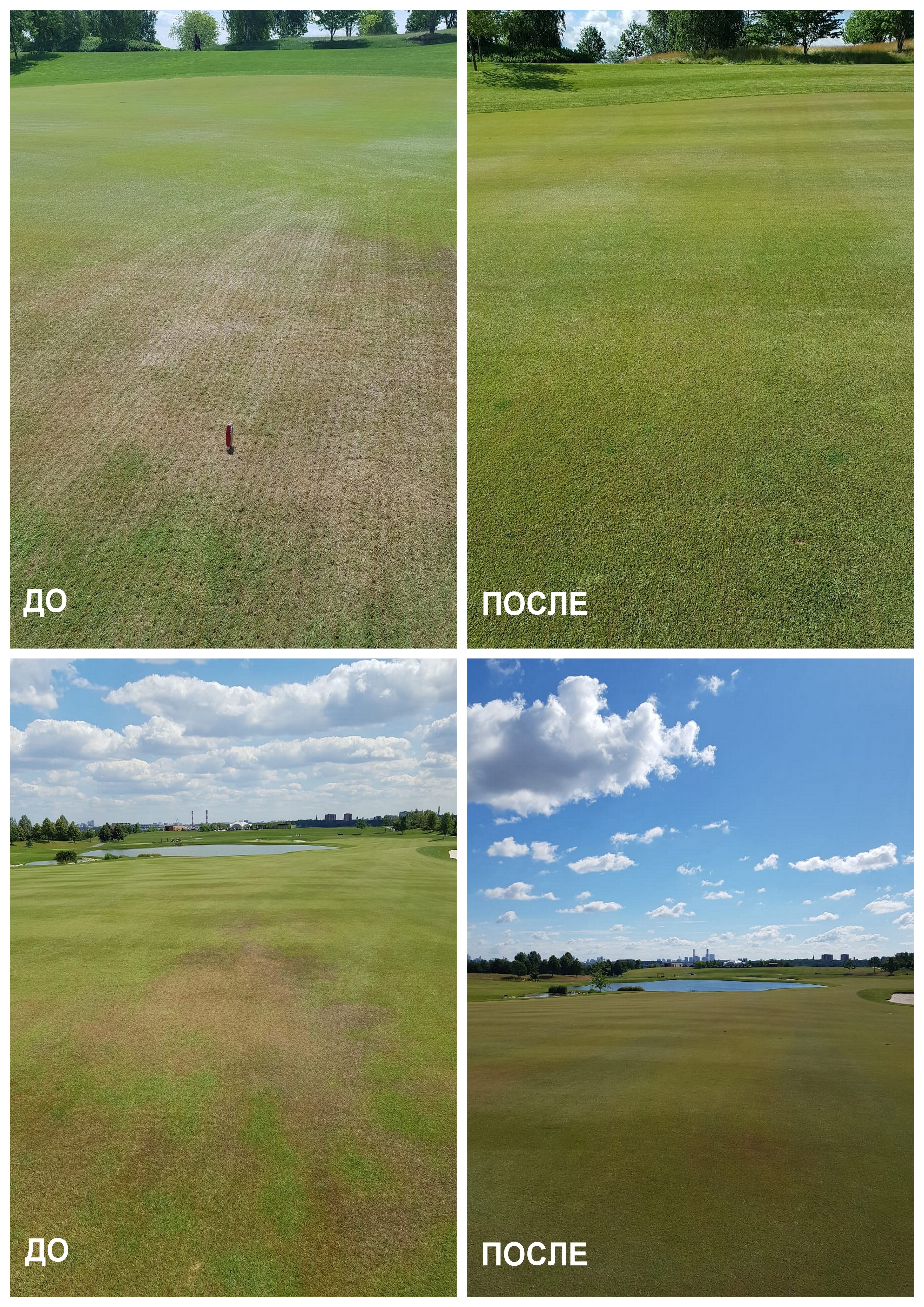 Гольф-поля, построенные на песке, имеют массу преимуществ: высокую скорость инфильтрации воды, хорошие дренажные свойства почвы, жесткость игровой поверхности, относительную устойчивость к уплотнению корнеобитаемого слоя. Но одной из главных проблем, с которой сталкиваются гринкиперы в процессе эксплуатации газонов на песчаном основании, является появление сухих пятен (localized dry spots (LDS)). Ключевая причина их появления – гидрофобность листовой поверхности или песка на глубине основной корневой массы. В первом случае вода не впитывается в почву, а скатывается с поверхности листа; во втором – попадая уже в почву, вода отталкивается гидрофобными песчинками, что в обоих случаях приводит к критической нехватке воды для газонных трав. «WETTING AGENTS – это эффективный инструмент борьбы с сухими пятнами на гольф-полях» - говорит наша коллега, главный агроном гольф-клуба «Сколково», Новолодская Милана. «Главным инструментом борьбы с LDS являются увлажняющие (смачивающие) агенты (wetting agents). С ними можно работать как системно: регулярное сплошное внесение препарата для предотвращения появления проблемных участков и постепенное «лечение» уже появившихся, так и экстренно: локальная точечная обработка «горящих» сухих пятен. Ежегодно мы стараемся пробовать новые появляющиеся на рынке препараты, искать баланс между ценой и качеством, снижать трудозатраты на борьбу с LDS. В этом году мы используем жидкие смачиватели-сурфактанты ICL из линейки H2Pro: TriSmart – для гринов и ти, AquaSmart – для полевичных фервеев. Вносятся они системно, ежемесячно, всплошную, начиная с конца апреля. С наступлением жары в начале июня фервеи в течение первых двух-трех недель хорошо удерживали влагу, сухие пятна долго не проявлялись, травостой был однородным. На гринах TriSmart чередуется с аналогичным продуктом другого производителя, влажность корневой зоны остается довольно однородной в разных высотных точках даже в период длительной засухи, а после обильных осадков излишки воды быстро дренируются. Прошлогодние опытные участки с хроническими сухими пятнами, дважды обработанные AquaSmart и TriSmart, стали в этом году значительно однороднее по цвету травостоя и влажности почвы в периоды экстремальной жары и нехватки влаги. Интересный продукт для использования точечно на «горящих» LDS – таблетки H2Pro Tablet. Они используются через специальный аппликатор, подключаемый к шлангу. Отлично снимают поверхностное натяжение воды и нейтрализуют гидрофобность листовой поверхности, что помогает проникать и задерживаться воде в почве. Моментально увеличивается влажность почвы на несколько процентов. Препараты H2Pro, как и другие аналогичные увлажняющие агенты, для получения результата, для борьбы с хроническими многолетними проблемами требуют систематического регулярного внесения, правильно подобранного промежутка, времени обработки и оборудования. А в сочетании с агротехническими мероприятиями, верно разработанными системой удобрения и режимом полива они помогут сохранить травостой здоровым и декоративным даже в экстремальных погодных условиях.» С уважением, главный агроном гольф-клуба «Сколково» Новолодская Милана Смачивающие агенты (WETTING AGENTS) ICL H2PRO – ТОТАЛЬНЫЙ КОНТРОЛЬ НАД ВОДОЙ!!! Благодаря современной технологии, предусматривающей совместное использование полимеров и поверхностно-