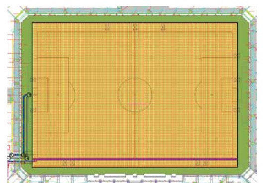УПРАВЛЕНИЕ: система подогрева управляется компьютерной программой, которая позволяет контролировать температуру поля в разных местах и на разной глубине при помощи специальных сенсоров. Пользователю необходимо только вводить данные о температуре, влажности и воздушности футбольного поля, а сам интрефейс, благодаря соединению входных данных со множества сенсоров и датчиков всех в нём соединённых систем, способен произвести желанные регулировки и выполнить необходимые процедуры.