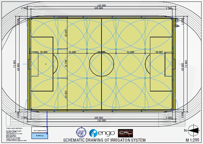 УПРАВЛЕНИЕ: Система полива, также как и система подогрева, имеет централизованное управление с возможностью создания программ полива. Электромагнитные клапаны находятся по периметру поля, и спрятаны в шахтах возле края поля. Шахта – это коробка, в которой спрятан электро-клапан и другие, дополнительные, компоненты системы полива.