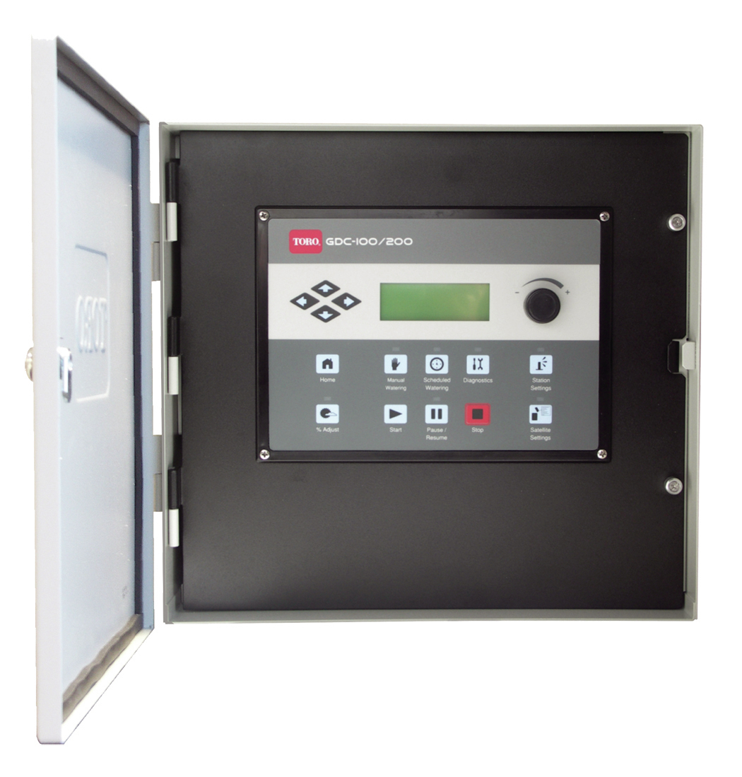 Декодерная система TOROGDC является более бюджетной и простой. Что ни в коем образе не влияет на качество и функциональность системы полива. С помощью декодеров, центральный блок управления GDC, контролирует каждую зону полива и каждый спринклер. При этой системе используется меньше проводов, декодеры спрятаны под землей, система потребляет меньше электроэнергии чем Сателлитная. Каждый декодер способен выдержать перепад напряжения аж до 20 000 Вольт, возникающий при попадании молнии.