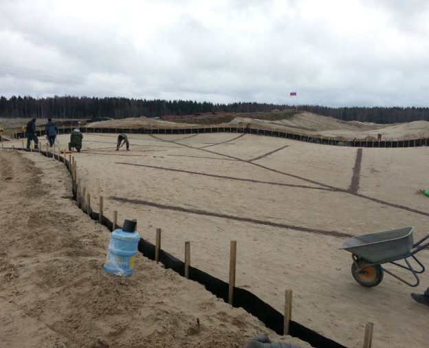 Строительство гринов, ти и бункеров определённо является наиболее трудоёмким и важным этапом строительства гольф-поля. Грины – самая важная часть поля, и, с нашей точки зрения, правильно построенный грин должен удерживать питательные вещества, иметь достаточный уровень перколяции, инфильтрации воды и воздуха, и быть резистентным к уплотнению. Грины необходимо строить в местах, открытых для солнечного света, и с хорошим дренажем. Размер грина зависит от строгости форм, длины выводящего удара, размещения преград и порядка обслуживания поля. На форму грина влияют склоны местности, направление преобладающих ветров и дистанция для выводящего удара. Строительство ти-бокса мы начинаем с изучения местных условий произрастания, а также оценки планируемого количества и видов игр, чтобы определить правильный размер площадки ти. Чем больше мест доступа к ти-боксу (чтобы распределить поток гольфистов по большей площади), чем больше солнечного света будет поступать на ти ежедневно (рекомендуется 8 часов), тем более износоустойчивой и долговечной будет площадка ти. Мы можем строить ти-боксы отдельно или секциями, достаточно большими, дабы, таким образом, сэкономить время оператора для экскавации. Чтобы способствовать ходьбе, мы размещаем ти в непосредственной близости к гринам предыдущих лунок, и, в целях безопасности игроков и работников поля, соблюдаем наклон сторон ти-бокса 3:1 (не более 18 градусов). Площадки ти – это единственные элементы гольф-поля, которые выравниваются таким образом, что имеют небольшой уклон и, в то же время, - ровную поверхность, для удобства совершения гольф-ударов. Будь то вэйст-бункер, на фервее или рядом с грином, в своей работе мы либо прокладываем водонепроницаемый барьер, либо напылением наносим специальное покрытие на дно бункера, чтобы предотвратить рост сорняков, и избежать смешивания грязи с песком. Мы имеем богатый опыт в строительстве песочных бункеров очень разнообразных форм и размеров, помня о том, что за бункерами более простых форм легче ухаживать, и они, как правило, более уместны в слегка холмистой местности, а бункеры более сложных форм больше подходят для холмисто-овражистого рельефа.